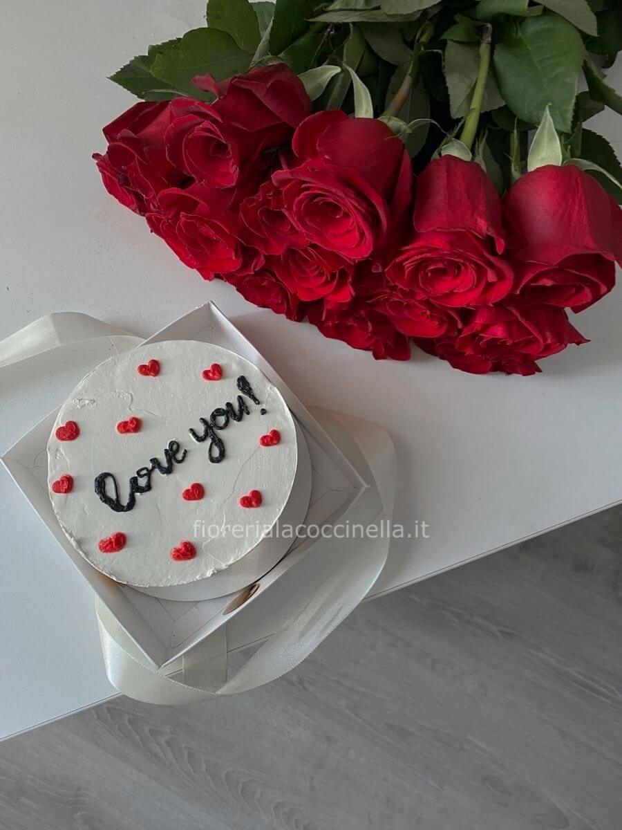 Bouquet Rose Rosse & Lamberth Cake LOVE