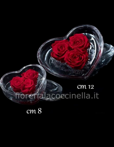 Rosa Rossa Stabilizzata - Cuore in vetro cm 12